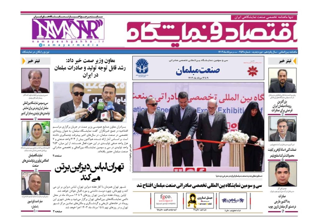 انتشار شماره ۴۵۹ نشریه اقتصاد و نمایشگاه به مناسبت برگزاری سیوسومین نمایشگاه تخصصی صادراتی صنعت مبلمان 1403-05-09 / خبر / از زهرا اسکندریان 459-moblemanدریافت