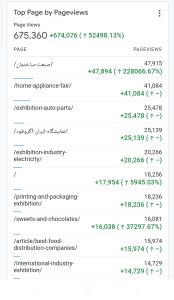 طبق آمار گوگل نزدیک به 30 هزار نفر در هفته برگزاری نمایشگاه لوازم خانگی از پایگاه خبری اخبار نمایشگاه ها بازدید کردند و اوج آن در روزهای برگزاری نمایشگاه به طور میانگین 6 هزار بازدید در روز بوده است این موضوع نشان دهنده استقبال چشمگیر مخاطبان از صفحه نمایشگاه لوازم خانگی پایگاه اخبار نمایشگاه ها است.